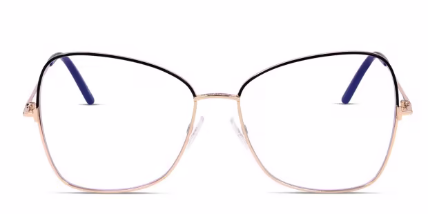 Estilo: montura metálica en forma de mariposa que fusiona el negro en la parte superior con un acabado dorado en la zona inferior.